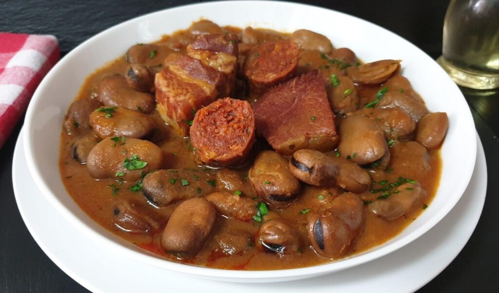 This traditional Cartagena stew is made with tender dried beans cooked in a rich and flavorful broth, featuring a delicious combination of chorizo, bacon, and other savory sausages.